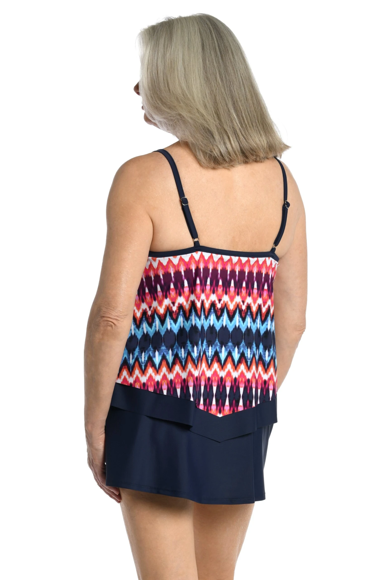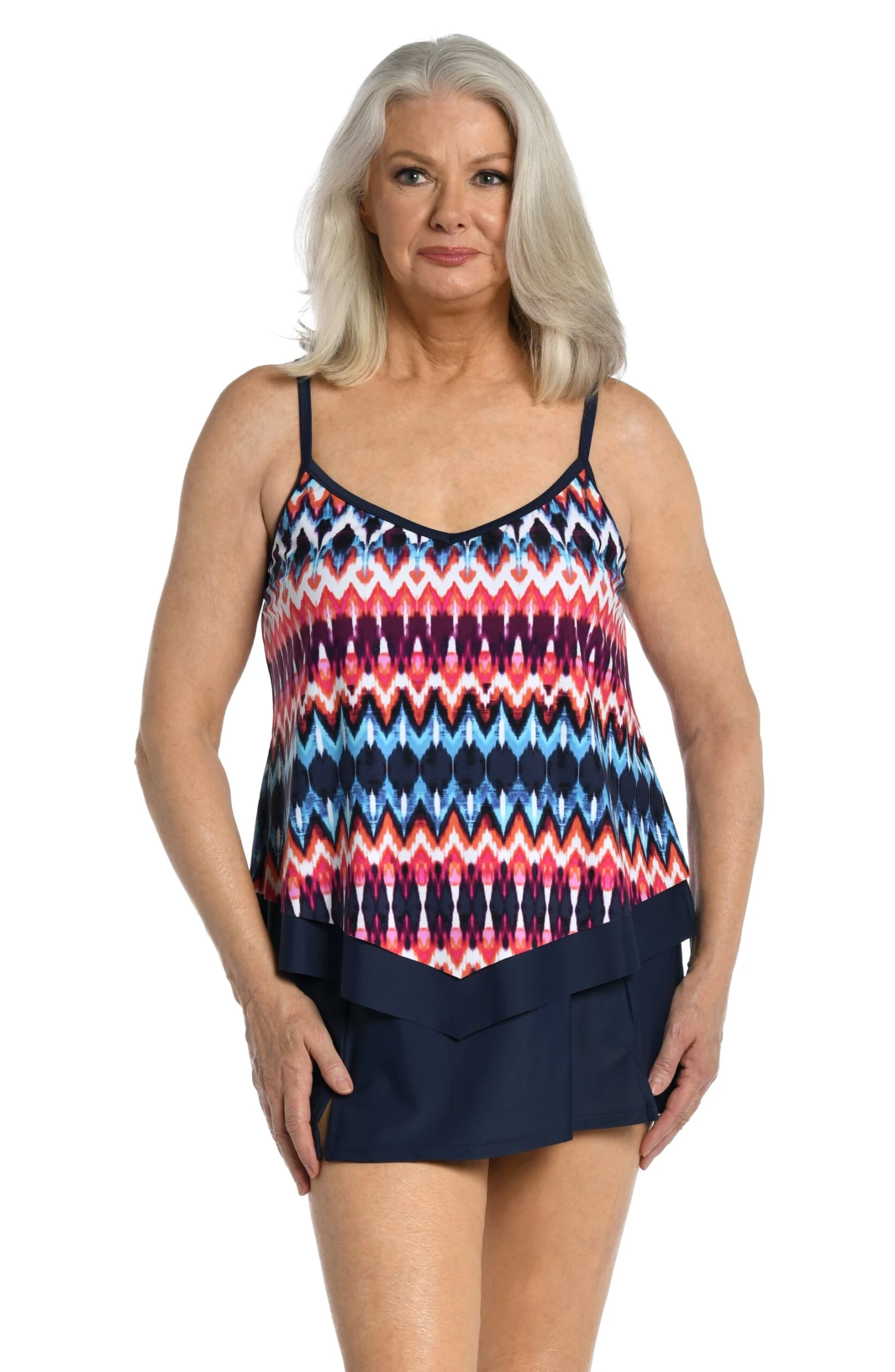 A heritage print reinterpreted in red, white and blue brings a touch of tradition to this tankini. Built-in cups and adjustable straps provide comfortable lift and support. A feminine flutter hem allows you to show off your softer side for a confident fit.