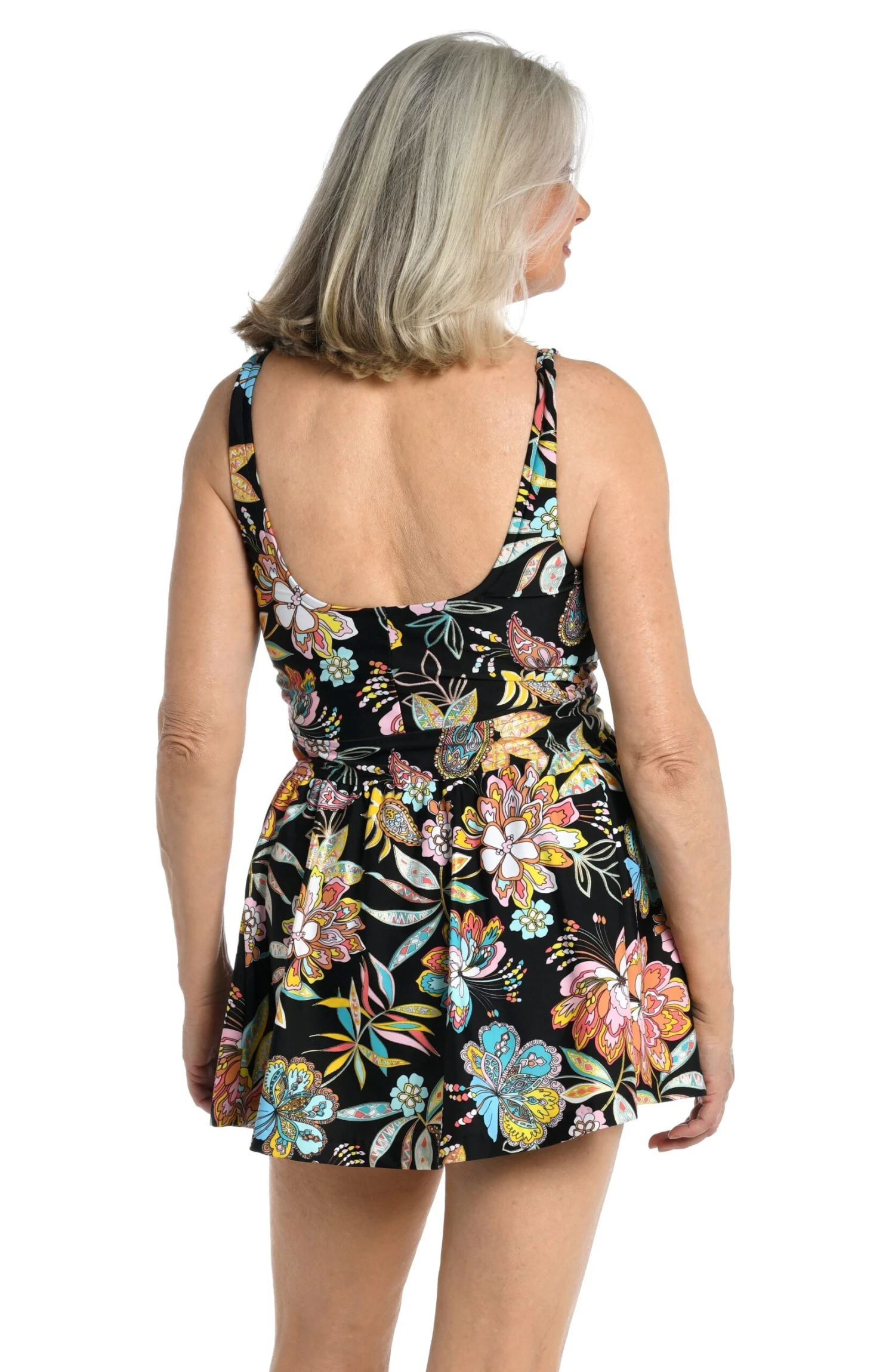 Inspired by the vibrant colors of a coastal town on the Yucatan Peninsula, this long tankini style features gorgeous blooms in bright, bold hues. The empire cut instantly slims the figure, hitting above your natural waist to create a free-flowing fit that provides ample coverage all the way around. Fixed straps and built-in cups offer comfortable support.